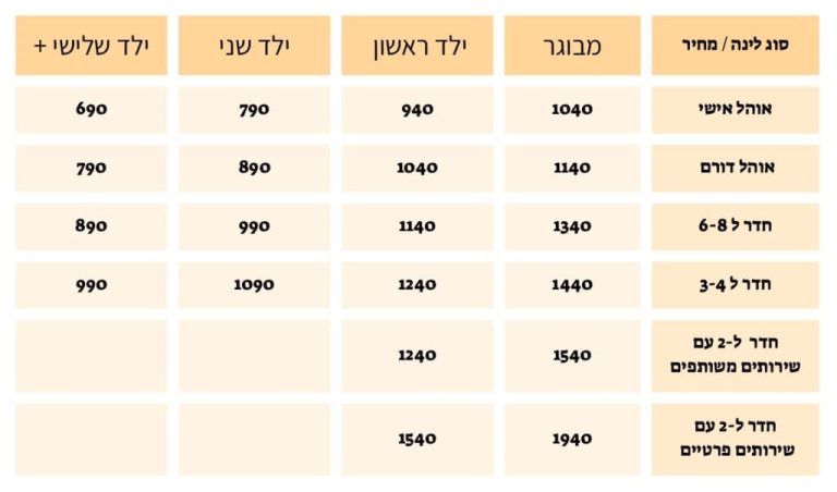 🛏️ אפשרויות הלינה מגוונות בחדרים בגדלים שונים, או קמפינג. כל החדרים ממוזגים, נקיים ונעימים. והם כוללים מצעים ומגבות. מתחם הקמפינג שלנו נעים ומוצל, עם שירותים ומקלחות צמודים, ו-2 אפשרויות: אוהלים שלנו שמוכנים מראש עם מזרנים, מצעים, מגבות, חשמל ומאוורר (אוהל דורם) או אוהלים שאתם מביאים (אוהל אישי).